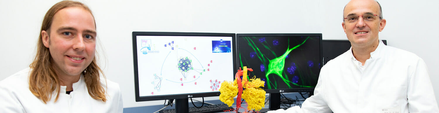 Spinale Muskelatrophie (SMA) ist eine erblich bedingte neurodegenerative Erkrankung. Dabei gehen die motorischen Nervenzellen im Rückenmark und im Hirnstamm allmählich zugrunde, die mit den Muskeln verbunden sind und ihre Bewegungen steuern. Die Folge ist ein massiver Muskelschwund, der in schweren Fällen unbehandelt bereits im Säuglingsalter zum Tod führen kann. Neben dem Verlust der Motoneuronen im zentralen Nervensystem (ZNS) gibt es zunehmend Hinweise darauf, dass auch andere Zellen und Organe im Körper betroffen sein können. Ein internationales Konsortium mit Forschungsgruppen aus Italien, Großbritannien, Spanien, den Niederlanden und Deutschland unter der Leitung von Professor Dr. Peter Claus, Molekularbiologe am Institut für Neuroanatomie und Zellbiologie der Medizinischen Hochschule Hannover (MHH), will jetzt die Auswirkung von SMA auf Organe aufklären und untersuchen, wie Medikamente individuell wirksam eingesetzt werden können. Das Netzwerk SMABEYOND wird im Rahmen des Wissenschaftsprogramms Horizon 2020 von der Europäischen Union für vier Jahre mit insgesamt 2,14 Millionen Euro gefördert.